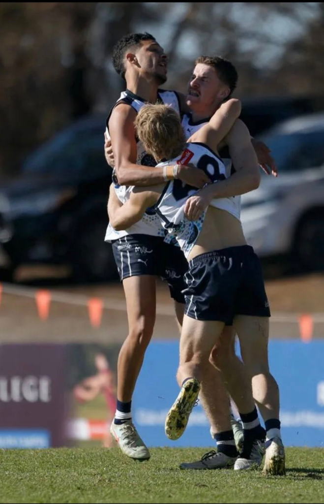 Right Tracks our youth Development Pathway. This Right Tracks is our youth development and life mentoring program, the pathway that drives everything we do. It’s about more than footy; it’s about helping young people find their direction in life through sport, education, employment, and cultural connection. The program’s symbol, the feather of the Red-tailed Black Cockatoo, represents strength, balance, and guidance, the same values that keep our players grounded and moving forward. Right Tracks helps young people stay on the ball, stay connected, and stay strong, on the field and beyond.